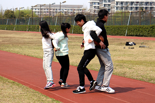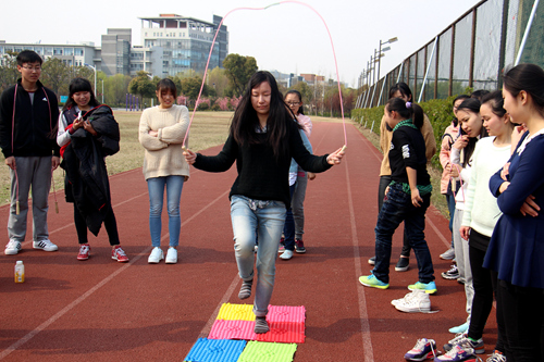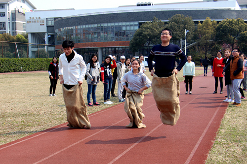 此次运动会共分为四个环节,依次为“袋鼠跳”“螃蟹赛跑”“运球接力”和“指压板竞技”。参赛小组共有六组,他们都为自己的小组取出了新奇而又充满朝气的名字,分别是:“我爱宋仲基队”“吃撑了队”“泡温泉队”“打豆豆队”“吃货队”和“Happy Beethoven队”。