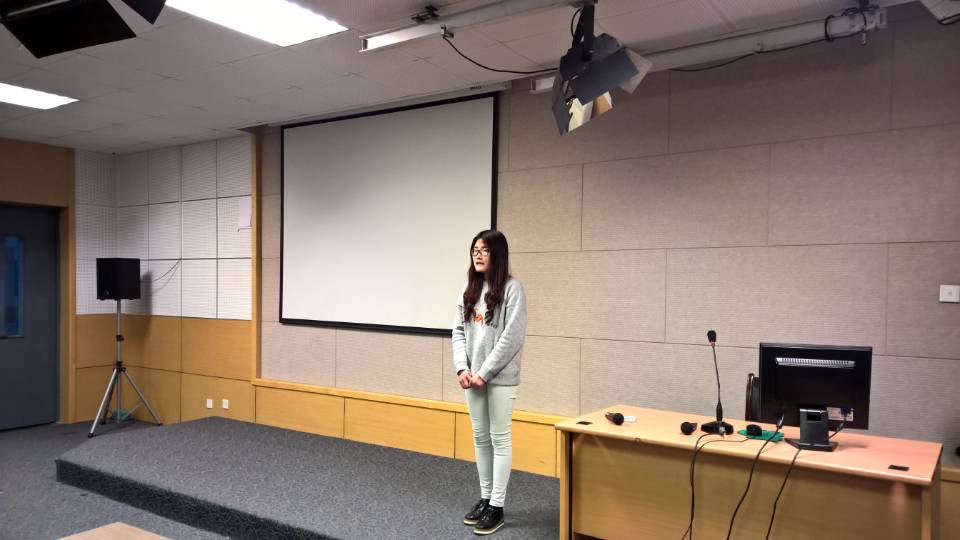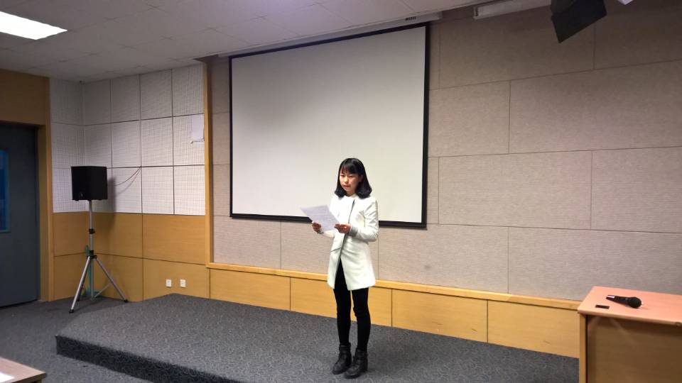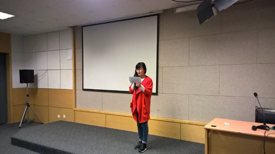 在徐阳的简洁明了的开场白之后,十二名竞选者按照办公室、文体部、学术部、宣传部的顺序依次进行演讲。前两位上台的是隶属于办公室的陆佳同学和何盼同学,她们的讲话时间不长,却条理清晰,娓娓道来,为本次竞选演讲开了一个好头。