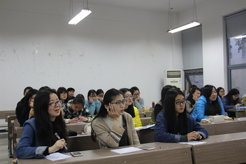 随即,曾任文学院团校秘书长的盛超楠同学上台分享了她的经验。她告诉大家,在考编制时决不可轻视来自其他院校的对手,建议同学们早些做好计划,着手准备考试以减轻精神压力。同时,她也向大家推荐了参考书,并就如何使用好这些参考书发表了自己的看法。在考试侧重点方面,她的观点与王颖同学不尽相同,她认为同学们对于每一部分考试内容都应该认真准备,而在迷惑的时候联系有经验的学长学姐寻求帮助则是一个了解考试相关内容的十分有效的方法。