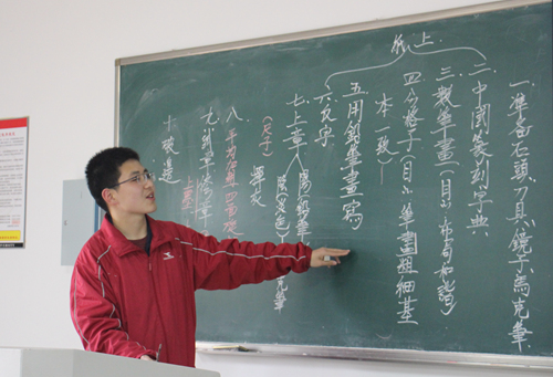 4月10日下午14:00,由文学院团委、文学院学工办主办,文学院云天书画社承办的“金石印心”系列活动第三场――潭面闲章在文综楼1004#4206教室如期举办。此次活动依旧由云天书画社的干事袁也同学担任主讲人。