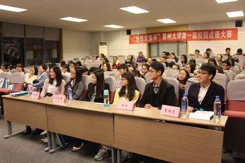 《中国成语大会》的播出在全国掀起了一股学习成语的热潮,故此,文学院亦组织举办了苏州大学第一届校园成语大会。本届成语大会由文学院团委、文学院学工办主办,文学院社联、文学院弄潮文学社承办,材料与化学化工学部萃取报社协办,苏州大学附属理想眼科医院独家赞助。