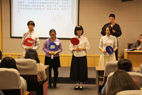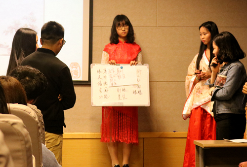 4月16日晚18:30,本届成语大会初赛的第一场比赛在独墅湖校区文综楼1005#5339如期举办,参赛选手来自多个学院。
