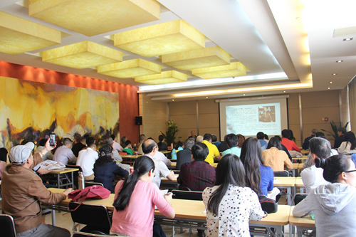 5月7日上午九点半,由文学院团委、文学院学工办主办,文学院云天书画社承办的“费之雄作品创作与赏析”专题讲座在独墅湖图书馆贵宾接待室如期举办。本次讲座吸引了许多热爱书法、热爱传统文化的苏州市民。老年人、青年人们都聚集在一起,用着呢喃软语交谈着,抒发自己对书法的独特见解。