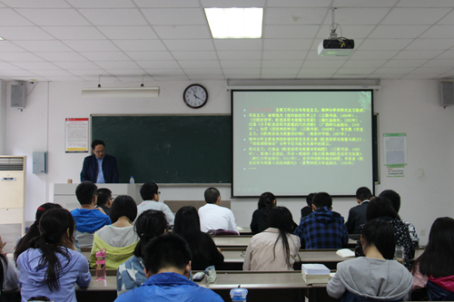 5月13日下午三点,由文学院团委、文学院学工办主办,文学院科协论坛部承办的“吴门雅韵”系列活动之“古典的意义:论陀思妥耶夫斯基”在1002#2101教室顺利举办,本次活动邀请到文学院的朱建刚老师担任主讲人。在主持人王立凤同学简单明了的开场白后,这场知识的饕餮盛宴就正式开始了。