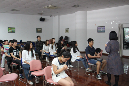 在团辅员许�对活动流程进行了简单介绍后,趣味十足的心理团辅活动便正式拉开了序幕。在大家的一片掌声中,活动进入了第一环节――心理游戏“驿站传书”。十位同学五人一组,分成A、B两队,坐成两排,分别由陈科旭、颜卿带领。游戏要求在规定的时间里根据规则,由最后一人将看到的纸条上的数字用最快的速度传递给第一个人,用时最短者获胜,游戏共分四轮。了解了规则之后,游戏便在紧张的氛围下开始了。第一轮,B队通过用手机发消息的巧妙方法在短短几秒内迅速完成信息传递,速度大大超过试图通过拍手传递信息的A队。第二轮,A队总结经验,改进方法轻松取胜。一比一平的战况让两队在第三轮中更加努力。第三轮中,B队通过转动椅子,队尾变队首的方法轻松获胜,巧妙的方法让对手也不由得鼓掌称赞。决胜局中,B队犯规,A队获胜。最终,第一轮游戏以二比二平结束。