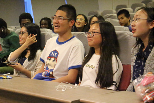 接下来,来自科特迪瓦的留学生蓝瑞也介绍了他的家乡。由于历史原因,科特迪瓦曾是法国的殖民地,因此法语是科特迪瓦的通行官方语言。其后,蓝瑞以一个视频为载体,向同学们展示了大量图片:包括科特迪瓦的国旗国徽、繁华城市阿比让的高楼大厦与夜景、总统旅馆、鳄鱼湖、各类美食等等。到了提问环节,大家又是一番积极提问。最后,有人提出想让蓝瑞唱一首歌,蓝瑞一本正经地说:“我不会唱歌,我一唱歌会下雨。”主持人立马接到:“原来你是非洲雨神啊,就不为难你了。”二人的幽默逗乐了在场的同学们。