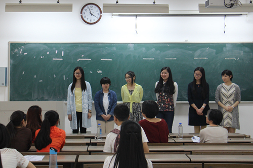 教师,是师范生们人生行程中的路标,指引着他们朝理想进发,他们亦无需再寻觅其他词汇,因为“老师”两字已是世界上最崇高的敬辞。师范生,作为祖国下一代教育事业的主力军,必须具备足够扎实的基本功,才能培育好祖国的幼苗。2016年5月23日下午13:30,由文学院团委、文学院学工办主办,文学院科协活动部承办的文学院师范生教学基本功大赛在文综楼1003#3205教室顺利举办。本次比赛共有六名汉语言文学(师范)专业的同学参加,并特别邀请到缪葵慈、高群、陆湘怀三位老师担任评委。潘欣瑜同学担任此次比赛的主持人。