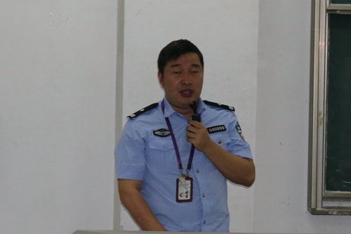 讲座一开始,贺警官给大家播放了一个关于犯罪集团集体作案的动画视频。视频展示了多种诈骗手段,灵活的画面和夸张的语言成功吸引了大家的注意。视频结束之后,贺警官又和大家一起分享了自己曾遇到的几个案例,以此来引起同学们的重视,希望大家提高安全意识。接着,贺警官又以ppt的形式展示了几种常见的诈骗形式,其中包括兼职刷信誉,淘宝客服退款等等。最后,贺警官还给每位同学发放一张写满各种防诈骗信息的材料,用真实的案例告诫各位同学防范要从身边的事做起。