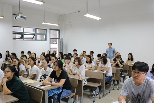 文学院学工办主任、2016级新生辅导员纪金平老师同时也担任着三、四两个班级的班主任职务,在各班班会期间,他亲自走访了所有班级。