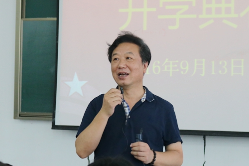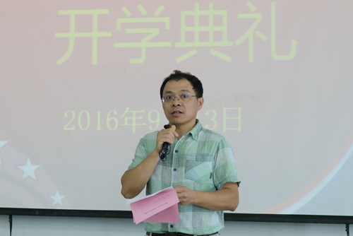 9月13日上午九点,文学院2016级新生开学典礼暨入学第一课在1001#1201教室如期举行。出席此次开学典礼的领导老师有:文学院院长、校学术委员会主任、教育部长江学者特聘教授王尧,文学院党委书记逢成华,文学院副院长李勇,文学院党委副书记、副院长张健,文学院副院长张洁,文学院综合办公室主任黄晓辉,教师代表刘祥安,班主任管贤强、张春晓,文学院学工办主任、2016级新生辅导员纪金平以及文学院团委副书记赵曜。整场开学典礼由张健老师主持。