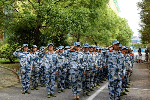 在正式训练之前,各排分别组织学生观看了爱国主义教育影片,充分调动起了新生们参与军训的热情。由于天气状况不佳,军训前期一直维持着低强度的训练,多数新生表示能够很好地适应。在休息期间,新生们在教官的带领下一起回顾了学习的军歌,各排之间也举行了拉歌比赛。一天下来,新生们个个面带轻松的神情,彼此分享着白天的有趣经历。