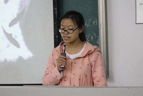 随后,15级志愿积极分子代表颜玉杰上台发表演讲,同16级新生分享自己在一年多的志愿过程中的经验和感悟。她讲到,独墅湖图书馆排书理架、博爱学校陪同特殊儿童游戏、立新小学传授传统文化知识的种种志愿服务工作,都让她感受到了什么是在奉献中收获快乐。
