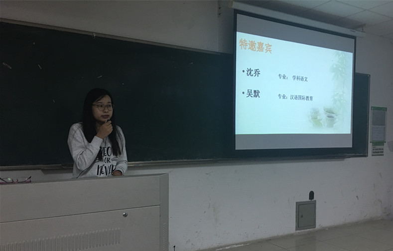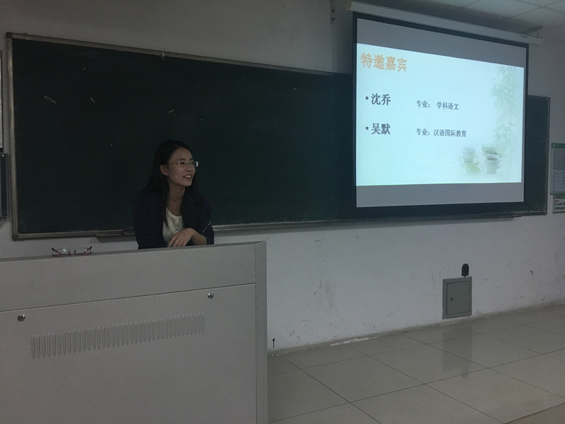 首先,主持人缪君妍同学介绍了今天做经验分享的沈乔同学和吴默同学,并对其能抽出时间为大家做经验交流会表示衷心的感谢。