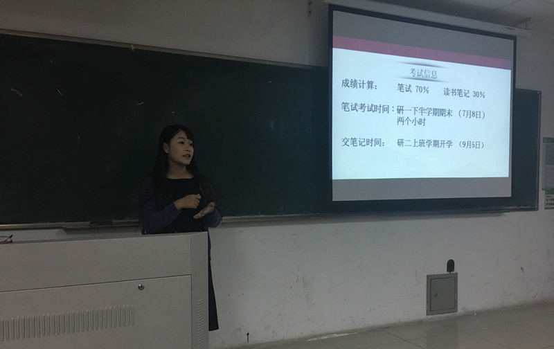接着第一个上台的是学科语文专业的沈乔同学,她首先大致介绍了必读书目考试的题型,考试只有十题左右的论述题,最后两道大题是案例分析题。接着她对考试的内容分配做了详细的分析。她提出,《教育概论》和《叶圣陶语文教育论必读书目》的内容比较简单,主要是记这两本书的主要思想。《课程与教学论》和《教育心理学》的内容比较重要,考试所占比例也较多,需要同学们多花时间细看。而《文学理论》的内容上年的考试没有考,所以同学们不用花费大量的时间复习。随后她对如何做必读书目笔记提出了两点建议。第一,在开始必读书目考试复习前要做好复习计划,确定十本书的复习顺序,先易后难,把重要的书目放在前面复习。她建议大家充分利用好寒假时间,寒假要尽量完成两本书的笔记。第二,可以用两种方式记笔记,一是把自己想记的笔记与学院的要求相结合,二是在完成学校布置的笔记任务的同时,按照自己的需要构建知识结构,然后一步步去填充,这样虽然花费的时间较多,但有助于同学们系统地复习必读书目,考试看到题目就会在脑海里立即搜索到。