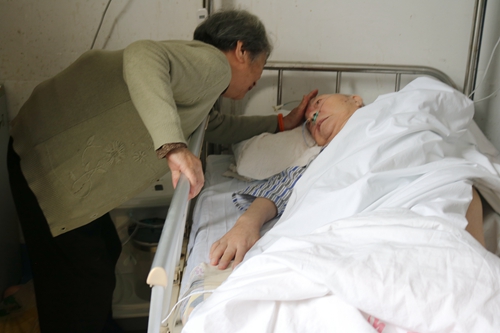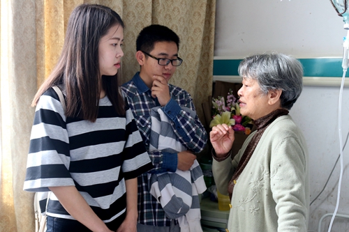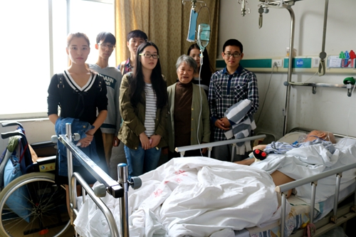 志愿者们在病房中见到了卜教授,他侧卧在病床上,无法说话,由妻子在旁照顾着。见到志愿者后,卜教授的妻子拉着他的手,向其告知同学们的到来。志愿者们向卜教授的妻子询问了病情,并传达了苏州大学文学院的祝福与慰问。卜教授妻子向志愿者们回忆起她的丈夫任教时候的许多细节。他当初著书研究,课堂教学的场景仿佛浮现眼前。在谈到对待学生方面时,她感叹道“对学生比对亲生子女还要好。”尽管从未受教于卜先生,但志愿者们依旧感受到了其无私奉献、投身学术教育的学者精神。