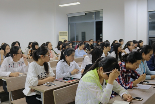 讲座正式开始后,徐栋同学首先进行介绍。在开讲之前,他与新生们进行了互动并向其提出问题“基地班不是什么?”新生们的回答五花八门:“不是死读书”、“不是能三心二意的地方”、“不是一个人的基地班”……听过新生们的回答之后,徐栋同学抓住了他们答案的共同点进行了详细解说。他提到:“给自己一次机会,哪怕摔下悬崖。”鼓励新生们相信自己,报考基地专业。随后他通过表格形式罗列出了13级基地班的外保情况并晒出了自己的成绩单,其出色的成绩让新生们赞叹不已。接着,他又为新生们介绍了基地班的读书沙龙活动、文学院学生三年的课程安排以及基地班在加考中涉及到的书目。在最后的提问环节中,新生们提出了自己不懂的地方,并得到了耐心答复。