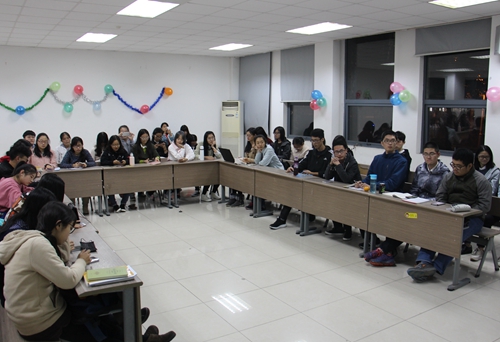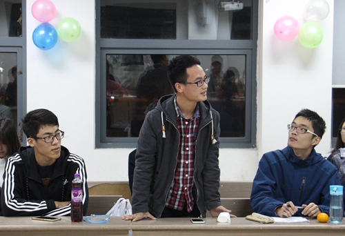 听过旋律优美的民谣之后,魏文韬同学积极发言并抒发了自己的感想,这也带动了其他同学述说自己独特的回忆。虽然每位同学对民谣的理解不尽相同,但大家都认真地聆听着彼此的看法。例如在谈及对《轻舟漫�》的理解时,一位女同学大胆地提出了与众不同的见解,她认为这是四川方言,并引人渐入崇山峻岭,山河水涧,船夫轻吟的妙境。活动期间还有听音识曲的活动,曹志伟同学的诗朗诵、弄潮文学社社长刘思奇《一剪梅》和副社长魏文韬《南山南》的演唱,都很好地活跃了现场的气氛,大家也都深深地陶醉在其中。该环节之后,有同学提出了个人对民谣的见解,并向大家介绍了其他关于民谣的知识。