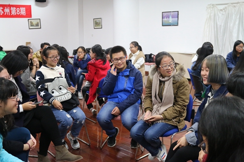 2016年11月9日晚18:30,由苏南地区大学生心理健康教育研究中心、苏州大学文学院团委、学工办主办、文学院学生会生活心理部承办的“一叶知秋,气象一新”之心融神会活动在五六食堂三楼团辅教室如期举行。生心部部长宋鑫丹和研究中心的人员共同担任主持人,引导参与本次团辅活动的新生增进交流。