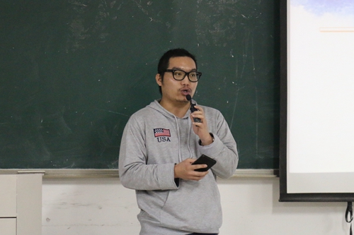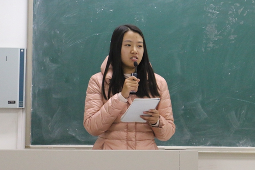 首先,主持人田雪晴作了精彩的开场白,宣布此次活动正式开始,并引导在场的同学们进行了简单的自我介绍。在大家彼此认识之后,辛韬同学最先走上讲台分享自己准备的影视作品。他为同学们介绍了一部曾在戛纳电影节获奖的黑白电影《鬼子来了》。辛韬同学播放了电影中的一些片段,并讲述了故事的梗概,其后,他也表达了自己对电影独到的看法。