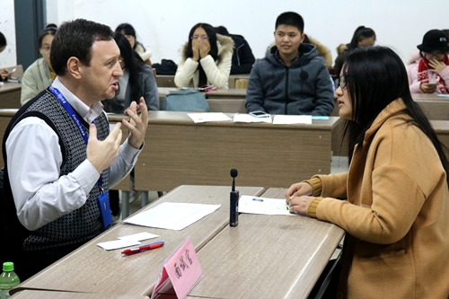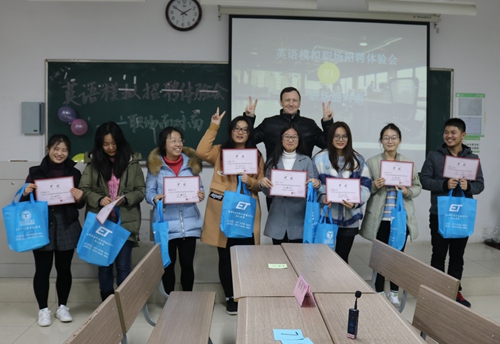 2016年12月1日下午六点半,由文学院团委、学工办主办,文学院社联、扬帆学社及ES国际英语共同承办的英语模拟职场体验会――职场面对面在文综楼1003#3205教室顺利举行。本次活动特邀来自英国的外教Robin作为此次英语模拟职场的面试官。