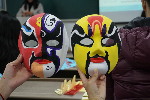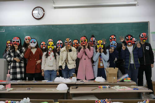 活动最后全体同学戴起自己精心绘制的脸谱在讲台前合影。本次活动不仅令同学们自己动手,亲身感受了传统手工艺的魅力,也唤起了大家对传统手工艺文化的探索和热爱,相信这会是大家研究生学习过程中一份美好的回忆。