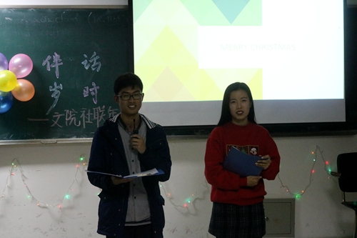 2016年12月21日,文学院学生社团联合会在文综楼1003#3104教室成功举行了“圣诞之伴话岁时”年会。社联全体人员赴约了此次年会。