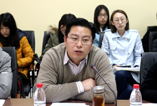 2017年3月7日下午一点半,文学院2015-2016学年优良学风班评比大会在文综楼1005#5335会议室召开。出席本次评比大会的嘉宾评审有:校督导陈桂声,文学院副院长丁治民,文学院党委副书记、副院长阴浩,文学院班主任代表管贤强,文学院教务秘书王台生,文学院学工办主任纪金平,文学院团委书记胡萱,文学院团委副书记赵曜,文学院学生会主席高祺琪,文学院科协理事长吴晨辰,文学院社联主席安宝颖,文学院新闻中心主任衣俊达。文学院学生会学习部副部长李唯伊同学担任此次大会的主持人。