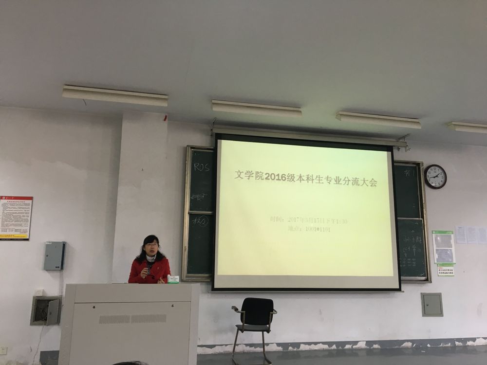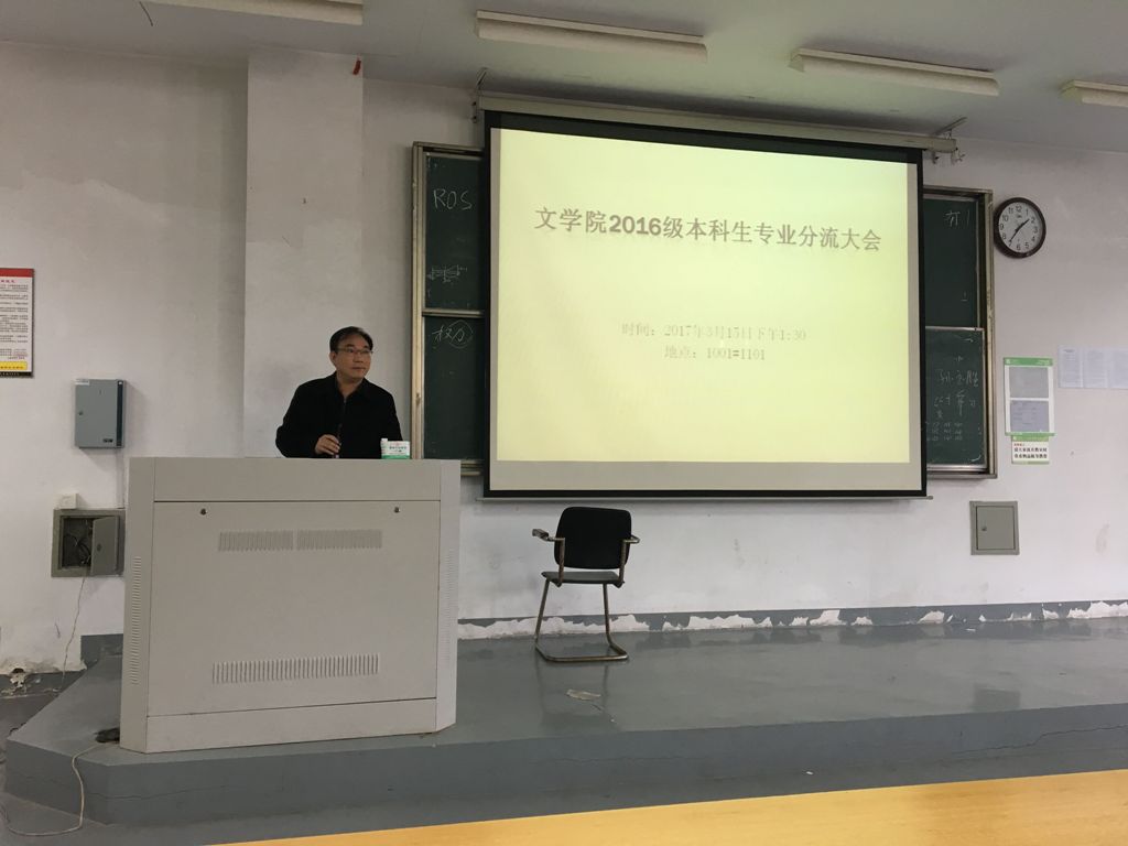 2017年3月15日下午1:30,苏州大学文学院2016级本科生专业分流大会于苏大独墅湖校区二期1001幢1101教室隆重举行。文学院院长王福利、系主任王建军、吴雨平、教务秘书王台生以及文学院全体16级本科生参加了本次大会。本次大会由学工办主任纪金平主持。
