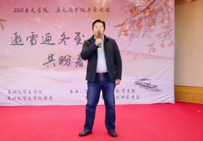 12月20日18:30,“邀雪迎冬至,共盼春熙来”——2021年文学院、唐文治书院冬至晚会在炳麟图书馆学术报告厅如期举行。本次活动由文学院、团委主办,由学生会、研究生会承办。文学院党委副书记、副院长阴浩,学生办公室主任纪金平,文学院团委书记季鹏飞,文学院团委副书记陆亚桢,留学生辅导员薛羽婷,唐文治书院辅导员王磊出席了本次晚会。文学院、唐文治书院的本科生以及研究生参加了此次晚会。