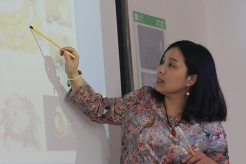 座谈会一开始是由苏州画信协会陈嵘老师向大家具体介绍画信的定义、作用,目前状况等内容。画信,就是一封亲手制作的有图有文的明信片,是笔墨文化传承的新方式。陈嵘老师通过PPT展示了她自己收藏的一些画信,有些是关于她自己旅游的所见所想,有些是记录当初的生活,有些是友人所寄以表祝福。“画信即画心”陈嵘老师提出这样的观点,她指出当今社会缺少真情和诚信,而画信恰好用来传递真情和诚信。画信传播也是心信交流。那一张张线条饱满,水墨晕染的画信简单朴素中蕴含着最真挚的情感和寄托,传递着美好,记录着曾经的点点滴滴,伴随着成长。