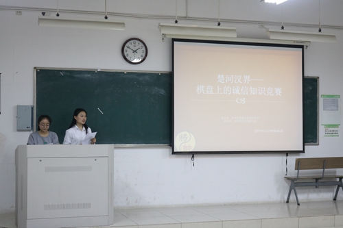 5月2日晚18:30,由文学院团委和文学院学工办主办、文学院学生会勤工部承办的诚信知识竞赛于文综楼1002#2203教室如期举行。由学生会勤工部的梁淼和方雪琴两位成员担任主持人,李梅和颜玉杰两位部长担任评委。