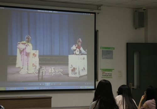 谈及老旦,杨同学指出昆曲老旦原多由男子扮演,后来这一角逐步转变为由稳重的女子扮演,且常扮作母亲。老旦台风以小而稳健为准,唱腔以宽厚清亮为主。接着,杨同学介绍了昆曲中正旦一角的朴素配饰――素色黑褶子和银泡头面,改变了同学们关于正旦头饰多属华丽的认知。更值得一提的是,杨同学以《烂柯行》为例,说明以端庄著称的正旦中也不乏泼辣之辈。她播放了一段《烂柯行》中崔氏痴梦的视频,让观众更直观了解到正旦的泼辣形象。紧接着,她又介绍了作旦和刺杀旦。作旦其实多是由十四、五岁的男子扮演,所以作旦又被称为“娃娃生”。刺杀旦分刺旦和杀旦,多表演凶狠、淫荡的女子,一角由两人饰演不同阶段。