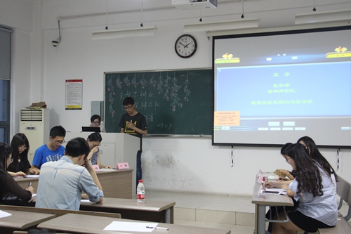 6月9日晚18:30,由文学院团委、文学院学工办主办,文学院社联、竞智思辩社承办的“2017年文学院辩论队年度测评赛”在1002#2303教室顺利举办。此次活动特别邀请到文学院2015级优秀辩手王潇凡、医学部2015级优秀辩手吴晓光作为本次比赛的评委。