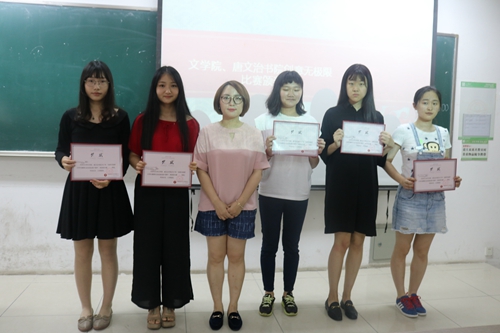 在接下来的颁奖环节,大家都心满意足地拿到了由胡萱老师和马嘉雯同学颁发的证明自己辛苦付出的奖状,并合影留念。
