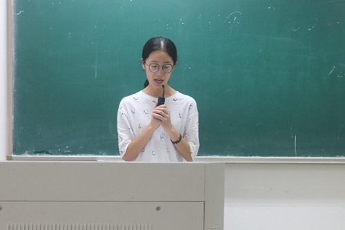 在第一个环节,潘欣瑜同学向大家介绍了暑期社会实践的前期筹备工作中重要的时间节点,叮嘱大家要牢记暑期社会实践进行过程中的要求。除此以外,她还汇报了暑期社会实践优秀团队的获奖情况,向他们表达了真诚的祝贺,并且预祝大家此次暑期社会实践活动能够圆满完成。