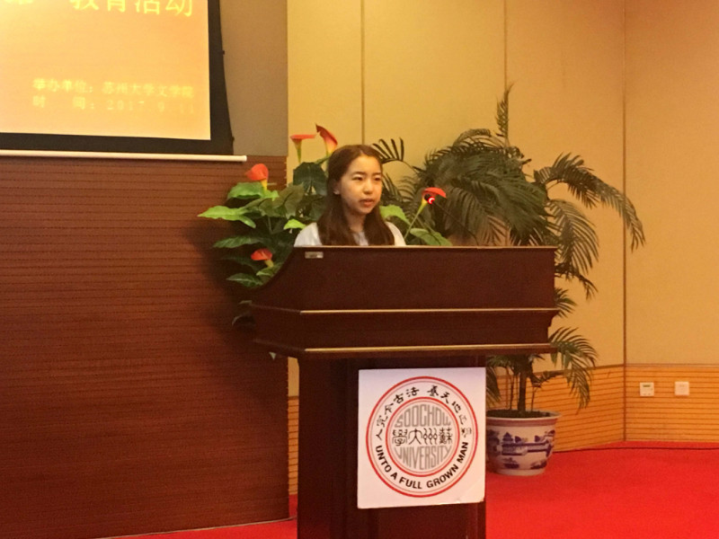 最后,17级研究生新生代表金韫之和15级研究生老生代表闫思含发言。作为一名本科在苏大就读的老生,