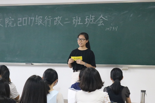 2017年9月11日上午九时,文学院2017级全体新生在文综楼1003参加了他们入学后的第一次班会。行政一班到四班的全体同学第一次走进各自的教室,准备好认识他们的新同学。