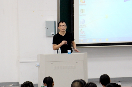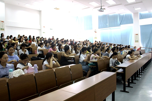 王建军主任则介绍了对外汉语专业即汉语国际教育专业的相关情况。汉语国际教育专业是文学院的一大特色专业,就业前景好,培养了很多人才,许多同学都对此有很大的兴趣。听得十分认真。