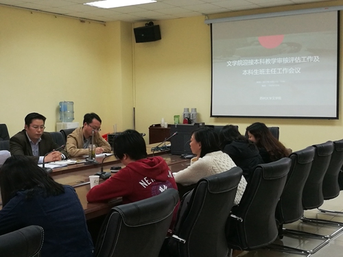 2017年10月17日下午一点,我院迎接本科教学审核评估工作及本科生班主任工作会议在文综楼1005栋5335会议室召开。本次会议由院党委副书记阴浩主持,出席会议的有副院长丁治民、文学院学工办主任纪金平、文学院团委书记胡萱以及本科各年级班主任。