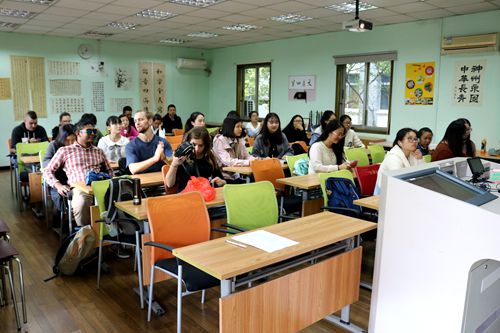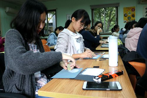 活动中,每一个同学都认真地完成着自己的作品,手法虽然不够熟练、略显生疏,但是同学们仍然充满热情。对第一次篆刻的同学来说,这是一个挑战,但是同学们互相帮助,加上活动组织者的尽力指导,每个人最终都能成功地完成自己的作品。因为刻刀不够,同学们两两一组,相互合作,更是与外国留学生打成一片,现场一片融洽。