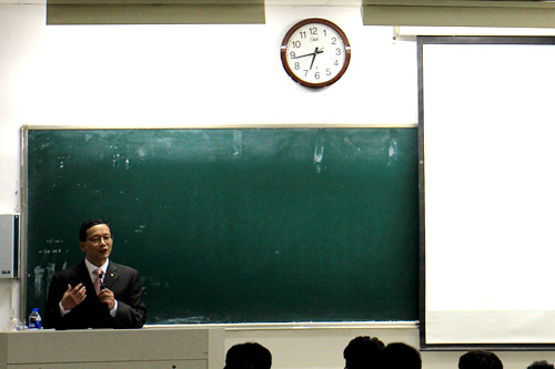 诙谐幽默的口吻、形象生动的比喻、丰富充实的内容,陈子平老师为同学们进行了一次精彩的演讲。同学们于笑声中细细思索、静静体悟,了解了德里达的人生经历和解构体系,并感知了不同哲学家的生活方式。