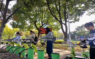 抵达白鹭园,同学们先把附近人行道上的公共自行车摆放整齐。之后,同学们以白鹭园为中心,对四周的草坪以及独墅湖图书馆周围的草坪进行了垃圾清理。
