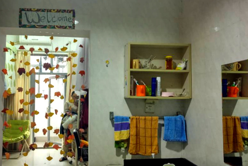 在大家忙碌的身影和满足的笑声中,2个小时很快就过去了,本次活动接近尾声,装饰工作也顺利完成。大家回到自己的宿舍,来参观自己被精心改造过后的小“家”。响起的是惊叹声,露出的是满足的表情。最后大家各自合照留念,本次活动顺利结束。