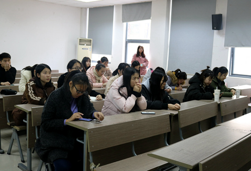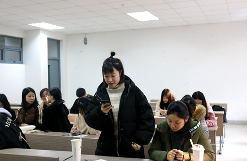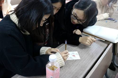 最后,作完画的同学禁不住拍照留念,画稿未完成的同学仍一心俯首作画。冬至时分,在这浓厚的传统文化氛围中,“寒梅吐玉,管城春满”――九九消寒图绘制活动圆满结束。