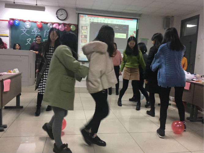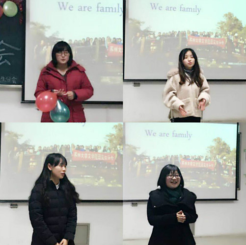 2017年12月30日晚18:30,苏大文院研会的同学们抓住17年的小尾巴,在文综楼1002#2101召开了双旦晚会――We’re 伐木累。在暖场舞“兔子舞”热身之后,活泼又不失庄重的双旦晚会正式开始。