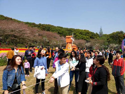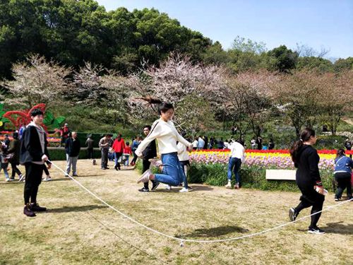 三月江南,草长莺飞,空气里洋溢着草木生长的清香和花开的芬芳,大片的郁金香开得正好。同学们在风车广场前抽签分成三组,分别由顾文杰、成艳容、平鑫颖三位主席带队。第一个游戏是拔河,原本计划三支队伍两两比拼,没想到在裁判员喊完“一二三”后,一二组成员正摩拳擦掌准备大展拳脚,绳子突然从中间断开,参赛成员和围观群众笑作一团。部长们急中生智,将绳子重新绑好,将拔河变成了跳大绳。三支队伍轮流上场跳绳,最终,第三组以31个的好成绩取得第一名,失败的队伍则接受了“低头转十圈”的惩罚。随后,三位队长和主持人吕佳璞又组织同学们进行“传声筒”的游戏,在这次的团队合作中,体育部徐子懿的“骑马舞”、青管部李相成的口音以及队员们神奇的脑洞都令人捧腹大笑,游戏环节在一片欢声笑语中结束。