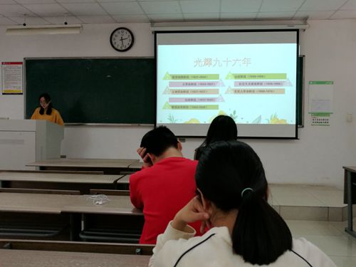 本次活动从五方面展开。首先是优秀团日活动经验交流分享。传媒学院马国元同学分享了传媒学院团委工作经验,并细谈了自己对于团日活动举办方式的心得体会。传媒学院的团日活动别出心裁,给出的建议中肯有效,赢得了在场同学们的一致称赞。15级外汉团支书胡永涵同学讲述了举办班级十九大主题团日活动的意义,并提出有效结合视频、图片、知识竞答等多样形式,将有效地增加团日活动的趣味性与教育意义的观点。16级师范一班团支书丁弋桐同学分享了与中国传统文化传承协会共同举办的团日活动。通过亲手绘制九九消寒图,让同学们更深切地感受中国传统文化的魅力。最后,政治与公共管理学院的团日活动“我对十九大有画说”,是由主持人薛伟代为展示的。通过手绘党的发展史,大家便可一步步感受我国革命道路一路走来的艰辛历程。