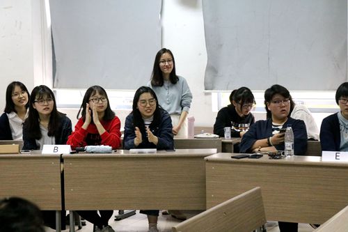 第一轮的50题很快结束,接着进入第二轮团体抢答赛。气氛顿时紧张起来,选手们都蓄势待发,各班的亲友团也十分给力,一直为选手们加油助威。