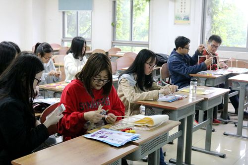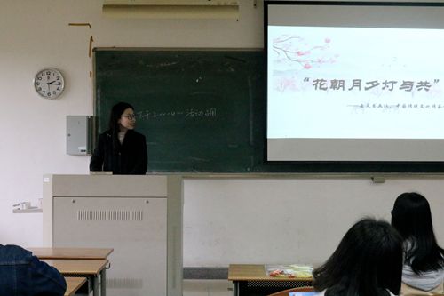 活动一开始,叶竹岩先向大家介绍了花朝节。花朝节是中国传统的民俗节日,为了纪念花神而设,古时人们多拜花神、踏青、赏红、插花扑蝶、提灯夜游来纪念花朝。近年,在“回归传统”的号召下,中国人种花、养花、赏花已蔚然成风,对传统文化的关注度也越来越大,像“花朝节”这样的传统节日也重新焕发了生机。今天,同学们就将以花灯制作为主,或书或画,在灯壁上寄与花朝随感,体味盎然春色。