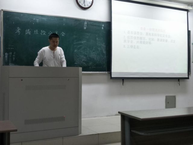 5月10日晚上18:30,由文学院研究生会主办的“见贤思齐,登高望远――考编经验分享会”讲座在文综楼1001#1102教室顺利举行。此次讲座由来自园区第二高级中学的谢轩学长,园区一中的胡习双学姐以及金鸡湖学校的沈瑜岚学姐为大家分享经验。本次分享会吸引了不少同学参加,现场反应热烈。